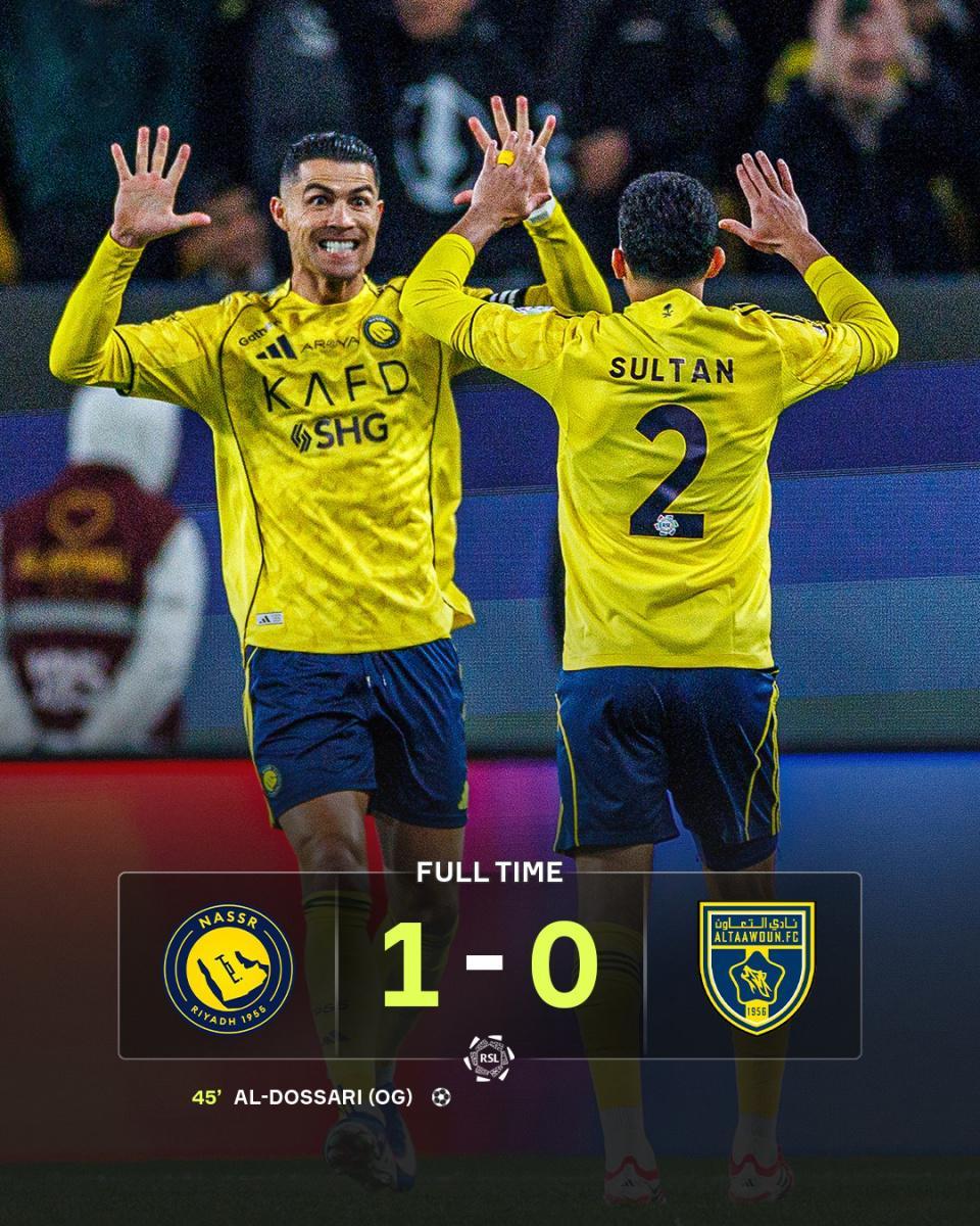 比赛进入最后阶段,胜利队多次错失扩大比分的机会。先是马内高速突破后倒三角回敲,菲利克斯门前抽射却意外踢呲;随后菲利克斯直塞,C罗禁区内抽射被扑,依旧没能打破进球荒。终场哨响,比分定格在1-0。